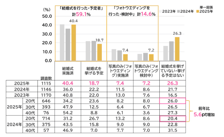 では、実際に「結婚式」をやる人はどのくらいいるのでしょうか。